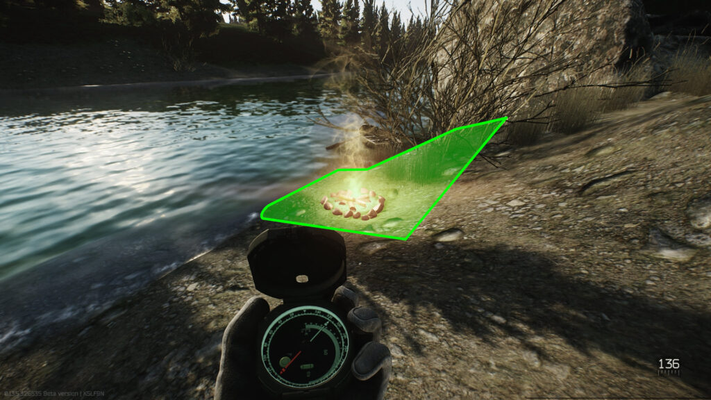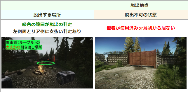 マップ南南東側(川から見て南西側)にある焚火の周りが脱出ポイント