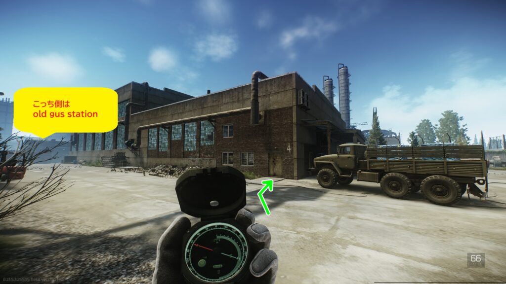 工場内に立ち入りたくないPMCや、PlayerSCAVが多く通る場所であり、SCAVが沸くスポットでもあります。 人通りが多いので、近くの岩山に伏せてPMCキルを狙うプレイヤーも居ます。ここにもボスのリシャーラが沸きます。中にはレジ3つとスポーツバッグ、鍵部屋には医療品バッグがあります。