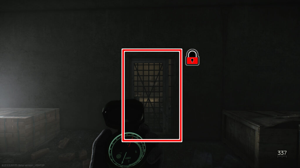 建物の奥にある扉に入り、階段を下った先の鉄格子扉を抜けた先が脱出判定となっています。